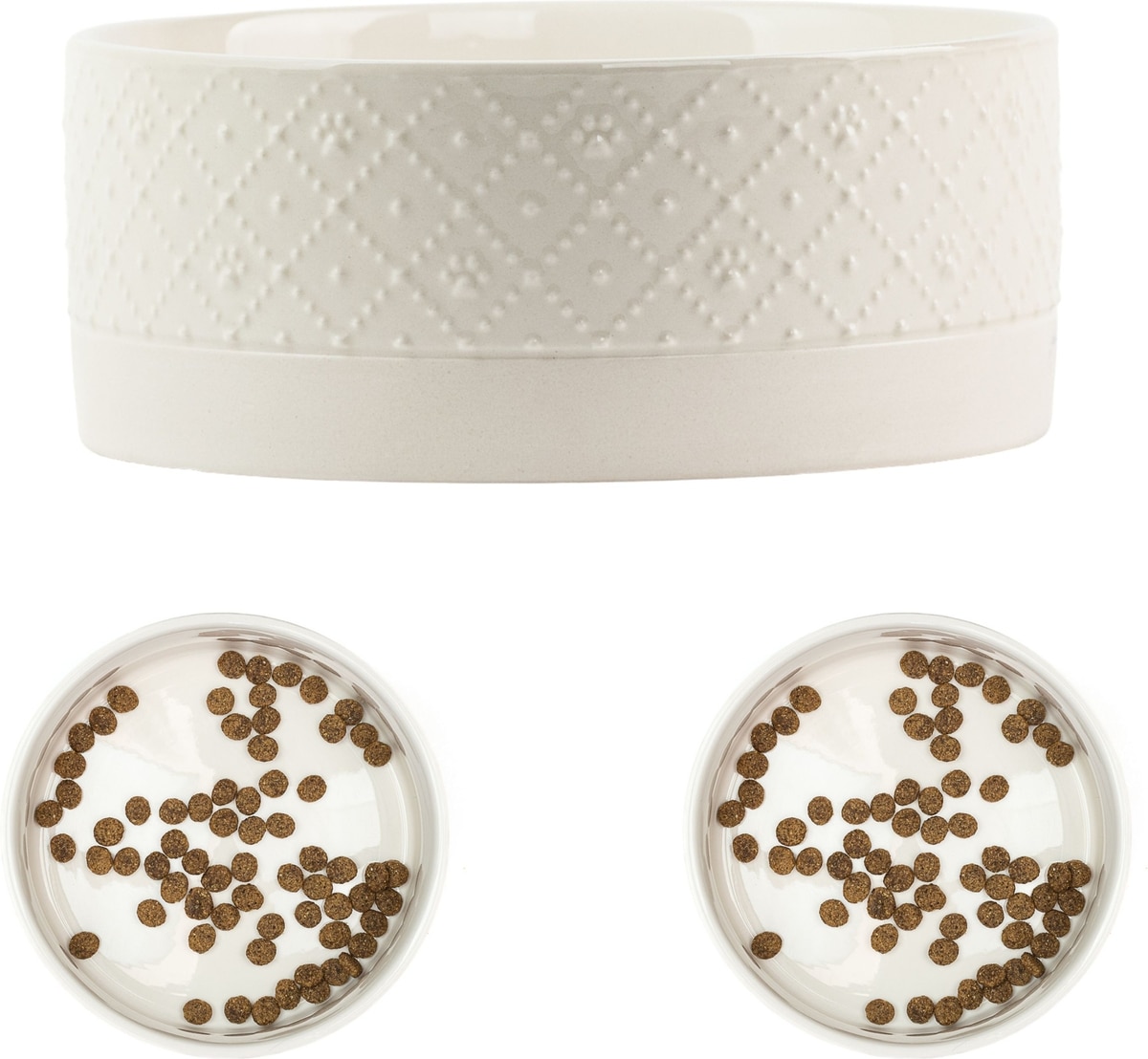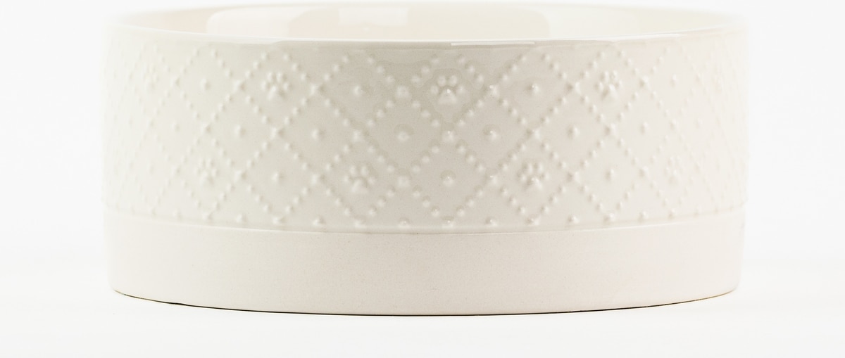 10 Strawberry Street Clermont Paw Embossed Dog Bowl, Set of 2, White, Large