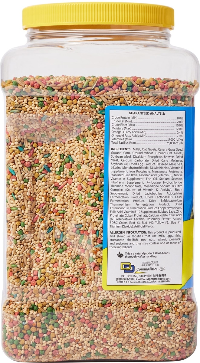 - 3-D Parrot Food, 4-lb jar$8.97 Chewy Price$12.09 List Price$8.52 Autoship PricePromo, New Customers Only: Spend $49+, Get $20 eGift Card