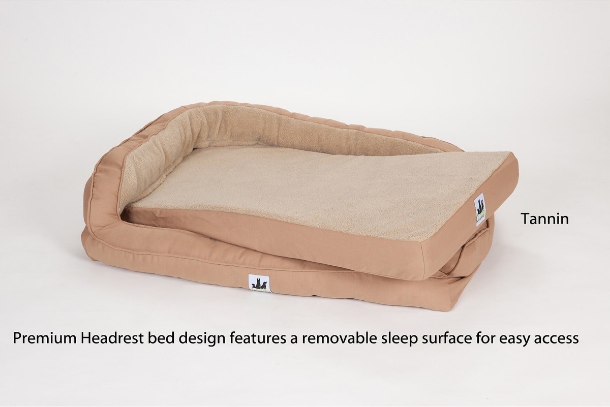 3 Dog Pet Supply EZ Wash Headrest Bolster Dog Bed with Removable Cover, Tan, Small