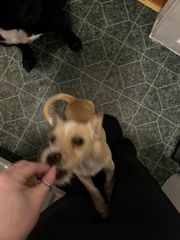 Pups love this beef lover! I have fed them other brands before but for some reason this one was an even bigger hit! The chunks are a pretty good size so I was a little worried with the small mouths but they had no problem and really enjoyed the treat!