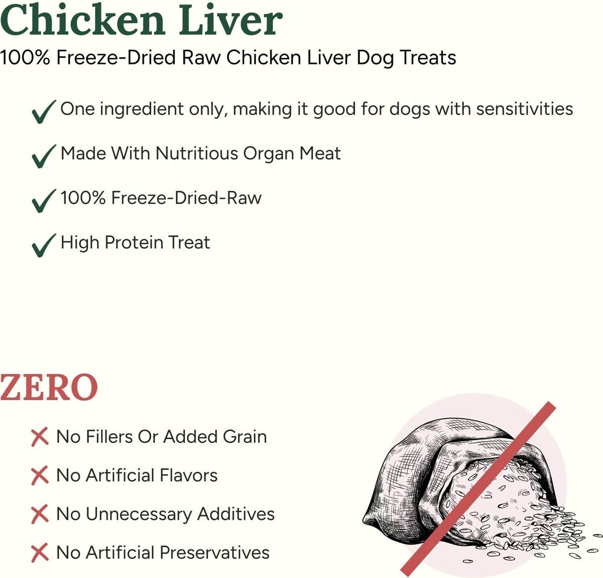 - Each treat is made with only one ingredient, raw chicken liver, which means there are no fillers, preservatives, or artificial junk.