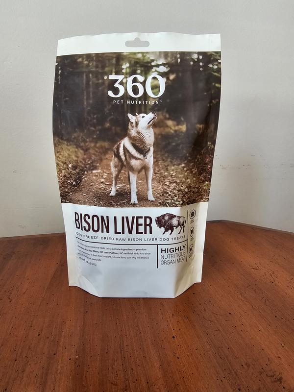 360 Pet Nutrition Bison Liver Grain-Free Freeze-Dried Dog Treats, 4-oz bag