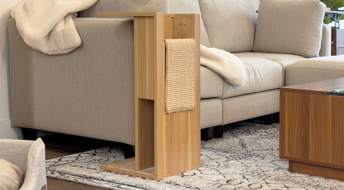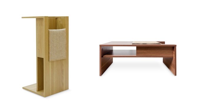 The Jewl can serve as a side table or lapboard for you as well as a sleek scratching post for your cat.