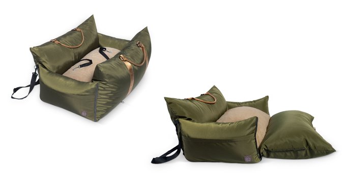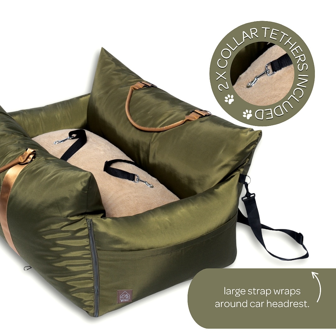 4 Cats & Dogs Marco Two Seater Dog Car Seat, Army