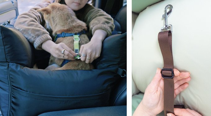 Includes two adjustable tethers that attach to your pet’s harness for added security on the go.