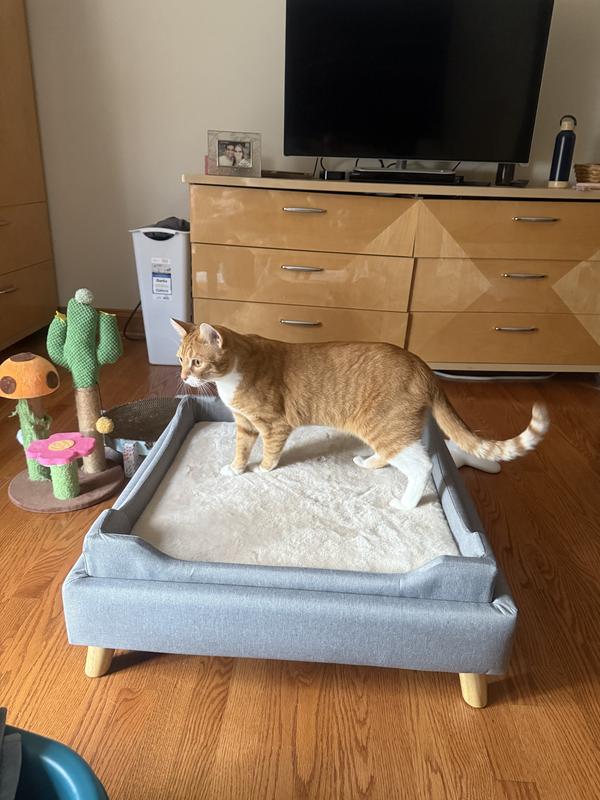 Lift up the ottoman lid to reveal a comfy pet bed tucked inside. Extend the hidden legs and the lid becomes a functional ottoman, so you and your pet can relax side by side.