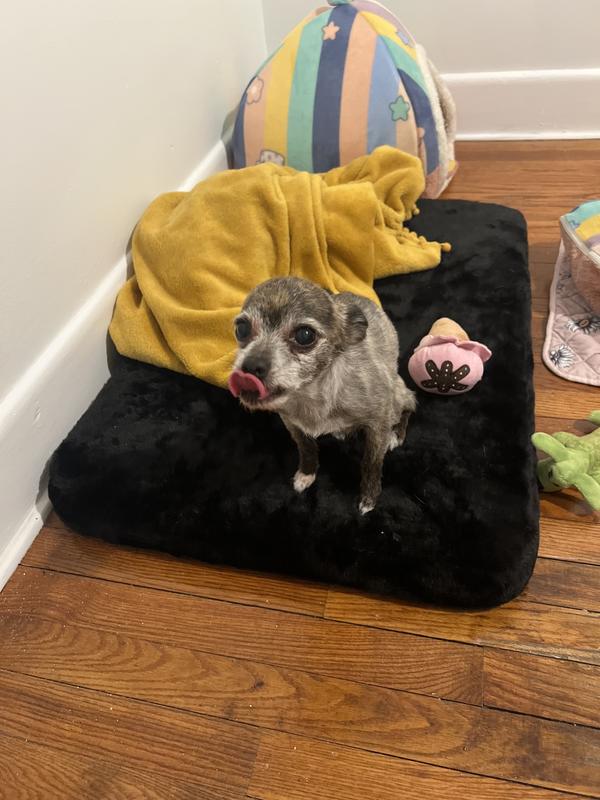 Perfectly sized for crates, this rectangular faux fur bed adds cushioned comfort for your pet on the go or at home.