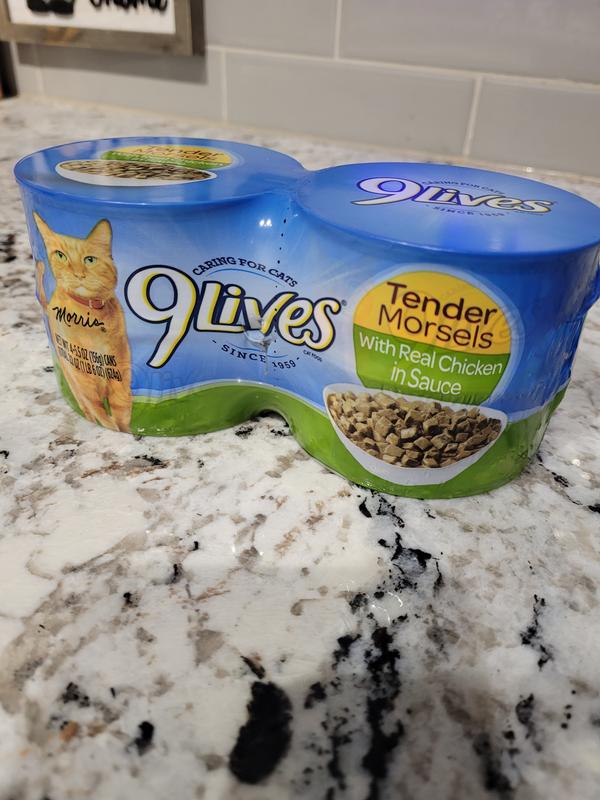- 9 Lives Tender Morsels with Real Beef In Sauce Wet Cat Food, 5.5-oz can, case of 4$3.29 Chewy Price$3.13 Autoship PricePromo, New Customers Only: Spend $49+, Get $20 eGift Card