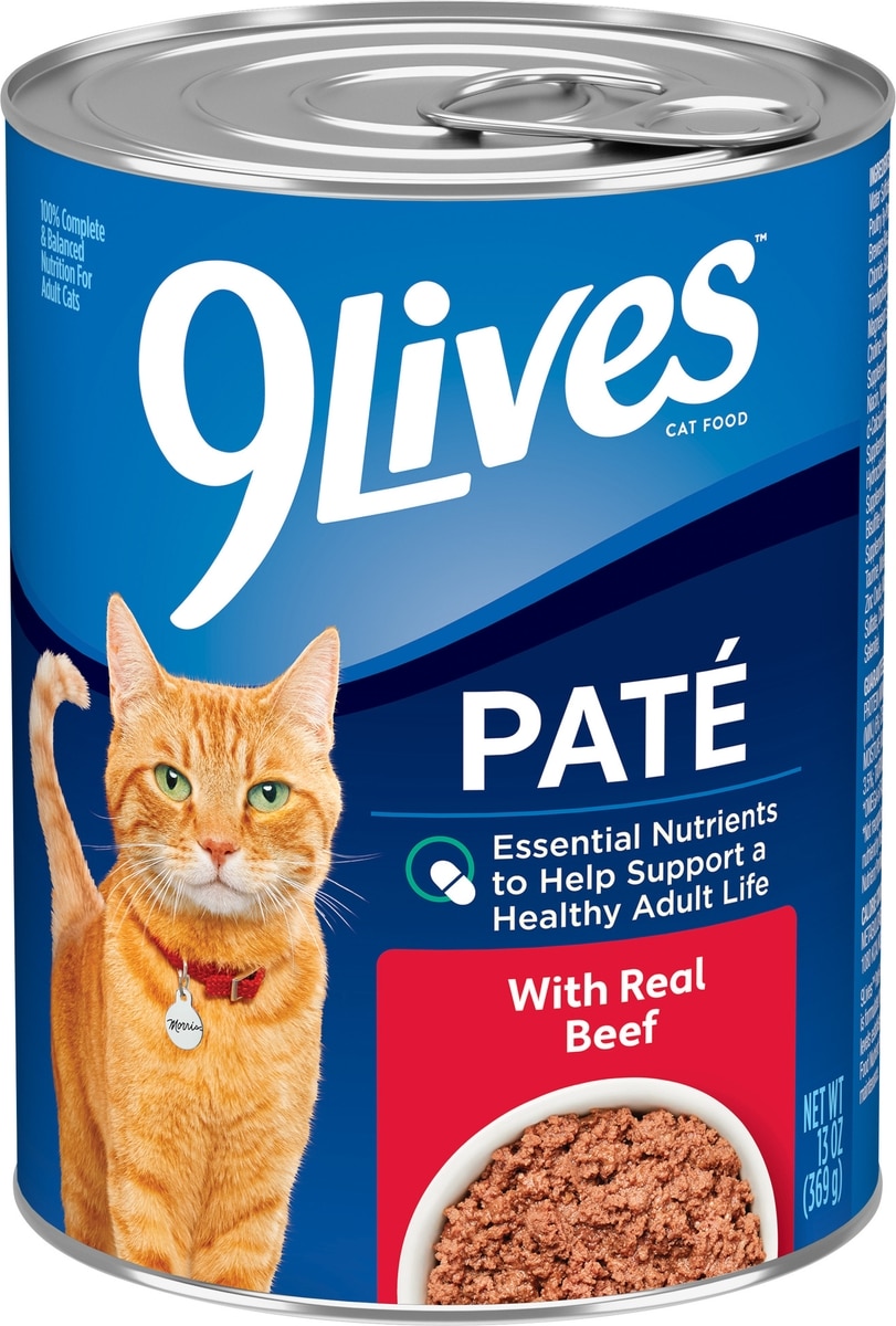 9 Lives Real Beef Pate Wet Cat Food, 13-oz can, case of 12