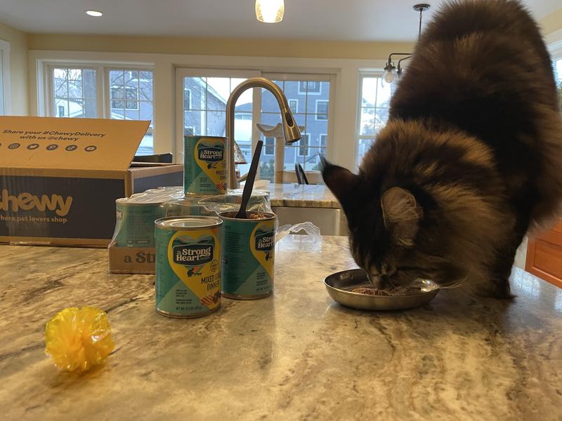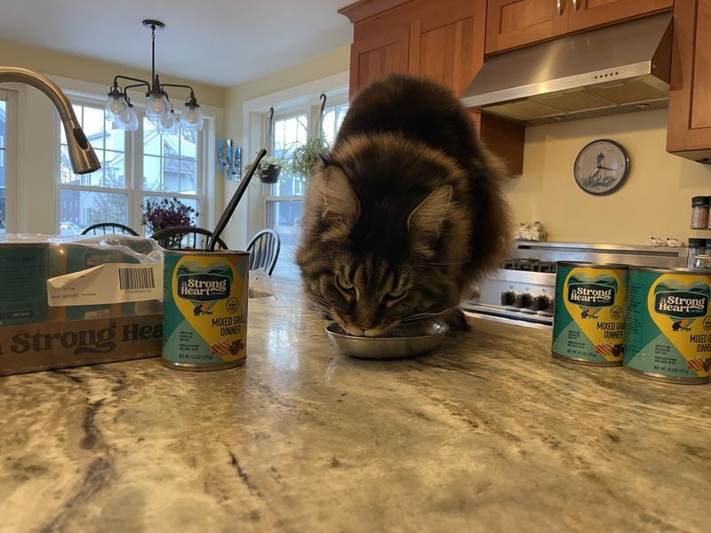 The Strong Heart Mixed Grill cat food was not a hit with my personal cats nor our shelter cats. I even offered it to our outside feral guy, and he turned it down
