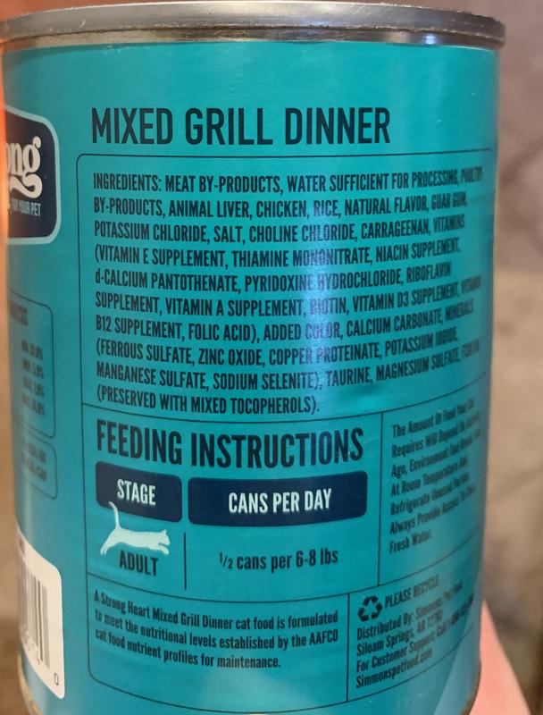 A strong heart mixed grill is advertised as being a balanced meal for all life stages. To be honest, I question this claim as the dietary needs of a kitten, adult or senior cat varies. I prefer a pull top can over breaking out the can opener. I will say that both my cats snarfed up the sample I gave them to try.