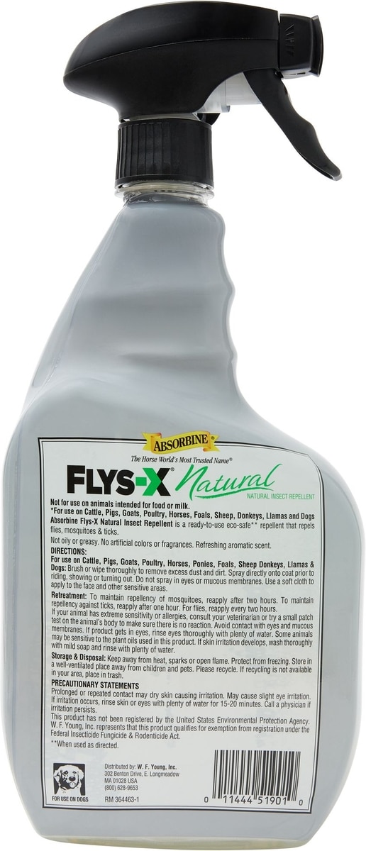 Absorbine FLYS-X Natural Fly Repellent Dog & Livestock Spray, 32-oz bottle, 2 count