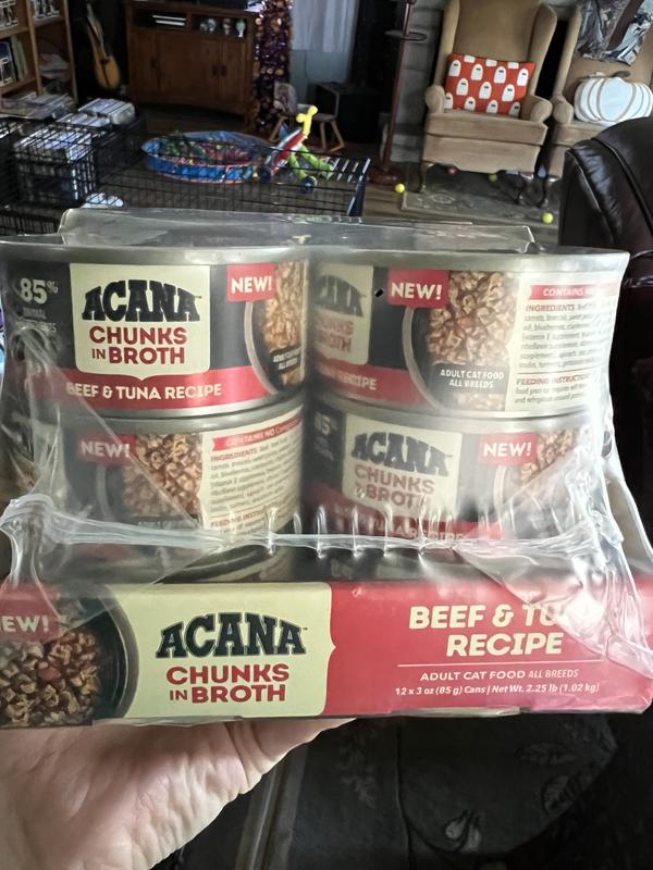 ACANA Beef & Tuna Chunks in Broth Wet Cat Food, 3-oz can, case of 12