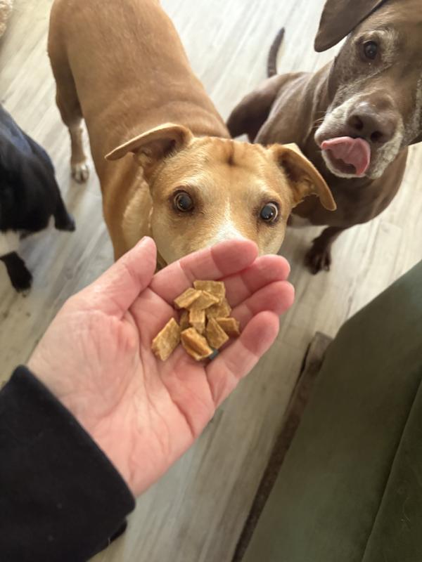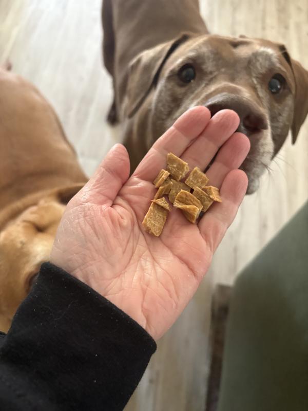 The perfect dual-purpose treats Just crumble them on top of your dog’s bowl as a meal topper or use them as the kind of reward they’ll work hard for. These premium dog treats will entice even the pickiest eaters and delight those who earn a delicious reward.