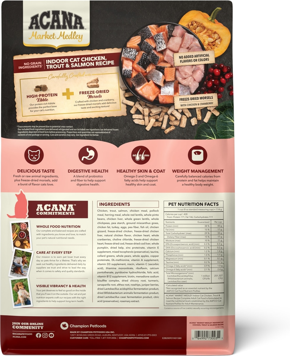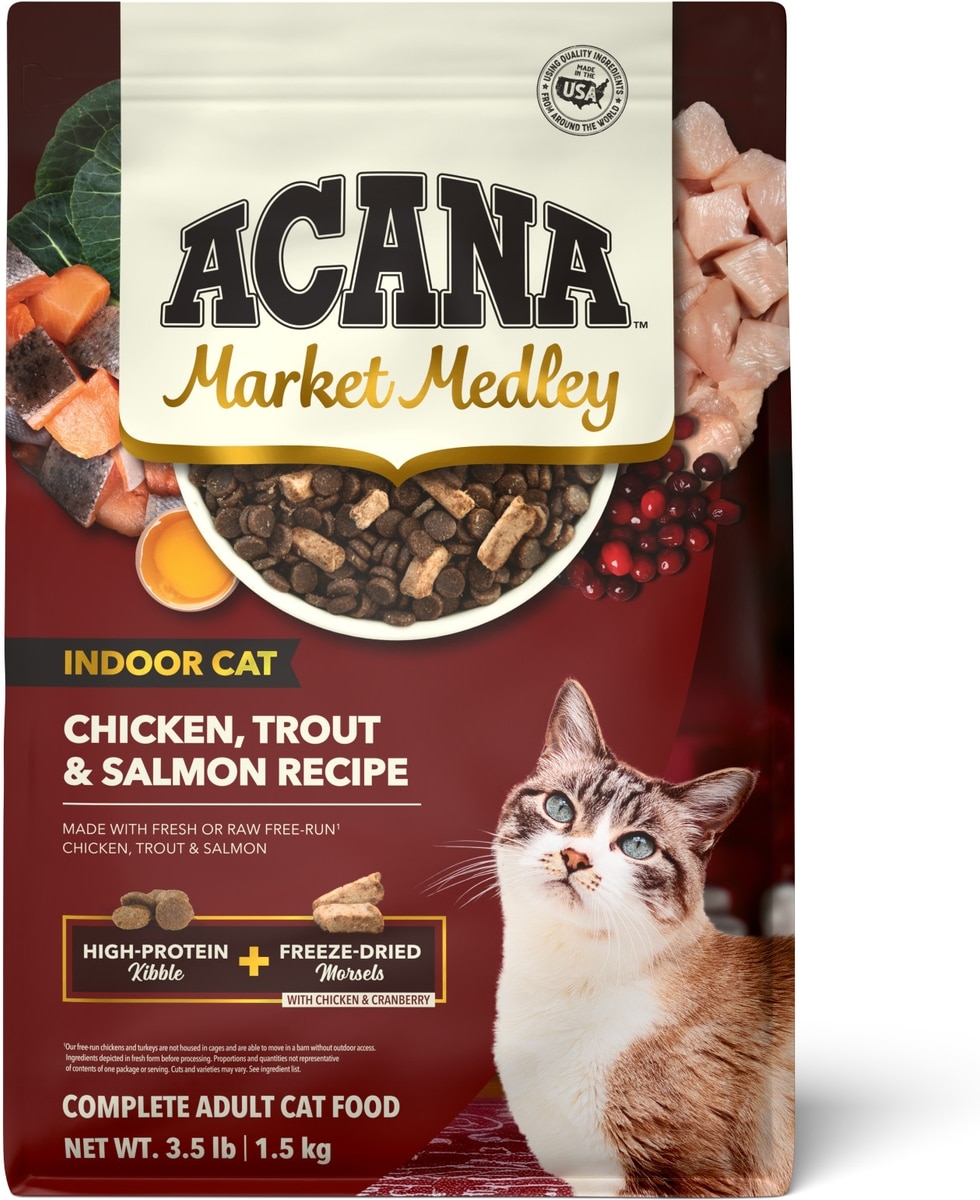 ACANA Market Medley Chicken, Trout & Salmon Recipe with Freeze-Dried Morsels Made with Chicken & Cranberry Grain-Free Indoor Adult Dry Cat Food, 3.5-lb bag