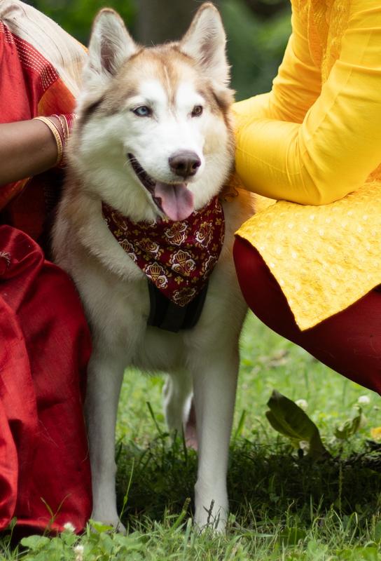 The colour combination went perfectly with our theme, since the collar went through the bandana, it was no discomfort for our dog.