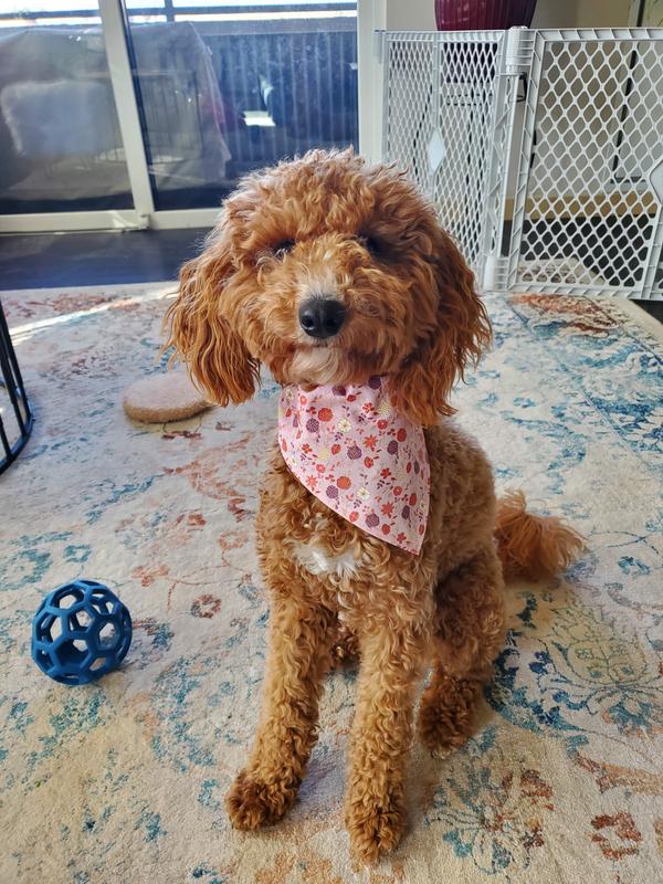 Great Bandana & so easy to slide on her collar No more tying and later losing the other ones I own