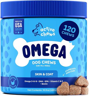 Active Chews Premium Omega Skin & Coat Pure Fish Oil Dog Supplement, 120 count
