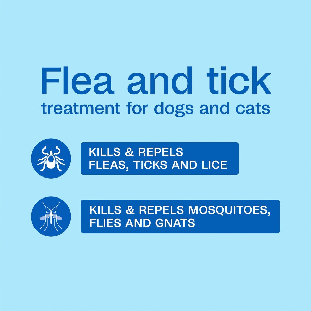 This solution is formulated to effectively kill and repel ticks, fleas, lice, gnats, mosquitoes and flies on canine companions and feline friends 12-weeks and older.