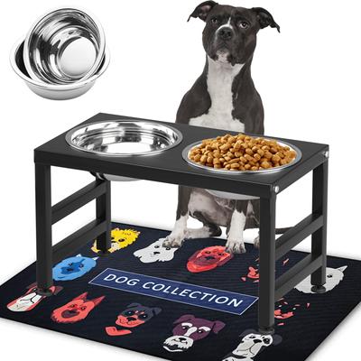 ADENGL Metal Elevated Dog Water Bowls with Waterproof Mat, Black, Medium: 5-cup