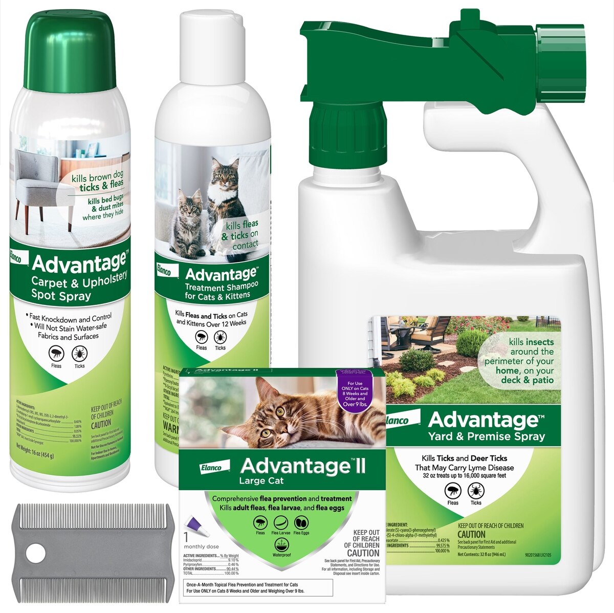 Bundle: Flea & Tick - Advantage II Spot Treatment, over 9-lbs, Advantage Shampoo, Yard & Premise Spray, Carpet & Upholstry Spot Spray & Frisco Flea Comb