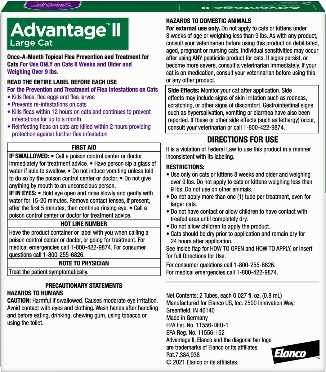 Advantage II Flea Spot Treatment for Cats, over 9 lbs, 2 Doses (2-mos. supply)