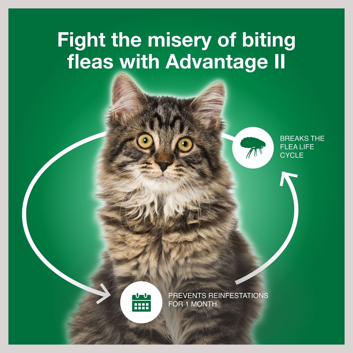 Advantage II doesn't just treat fleas––it breaks the flea lifecycle to prevent reinfestation.