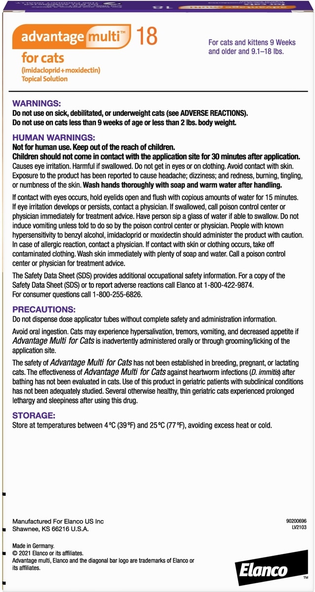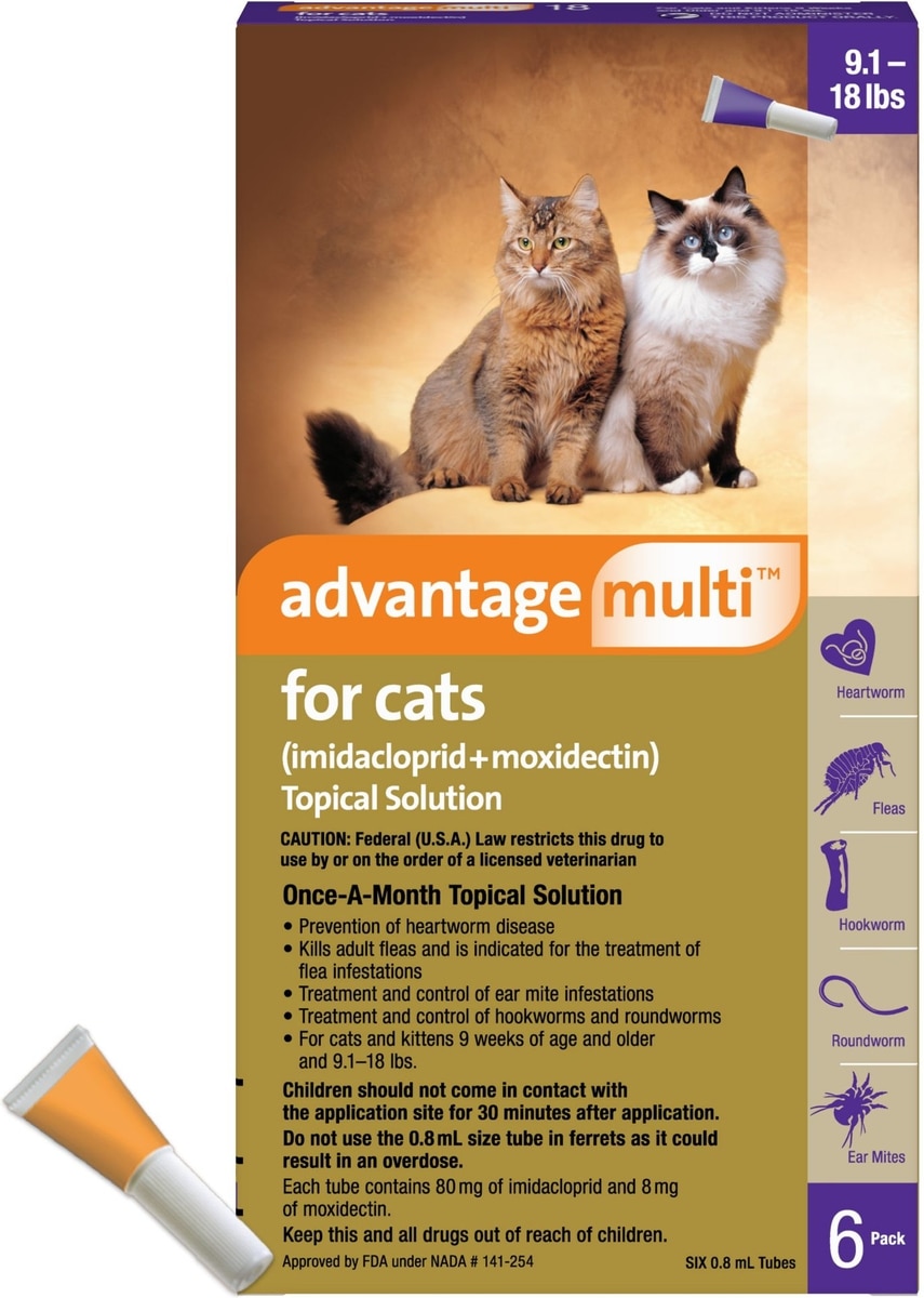 Advantage Multi Topical Solution for Cats, 9.1-18 lbs, (Purple Box), 6 Doses (6-mos. supply)