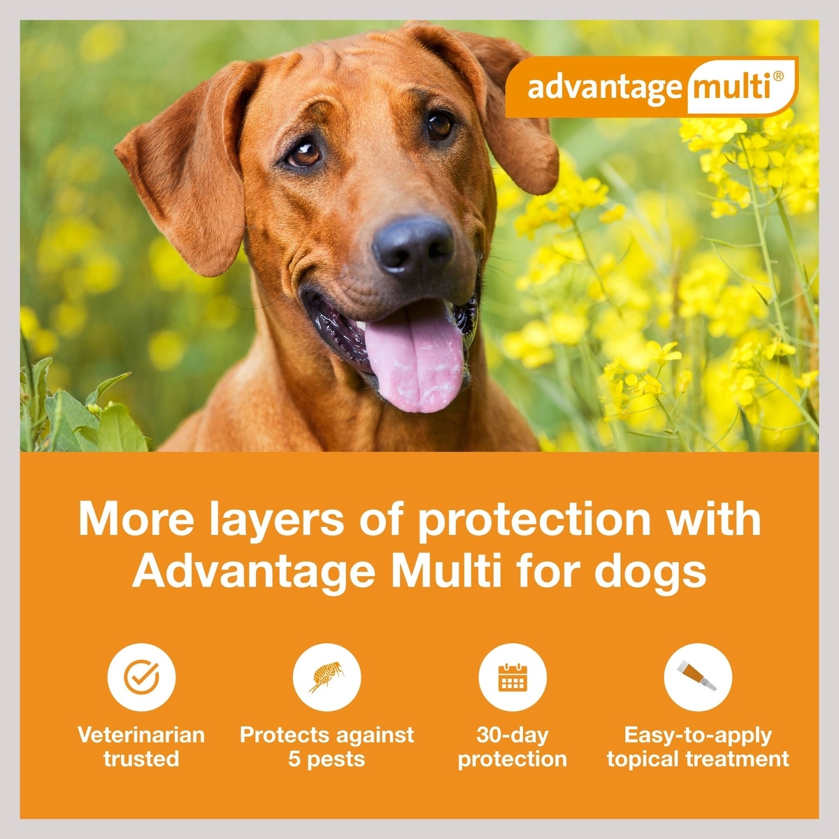 - Advantage Multi provides 6-in-1 protection from fleas, heartworms, roundworms, hookworms, whipworms, and sarcoptic mange.