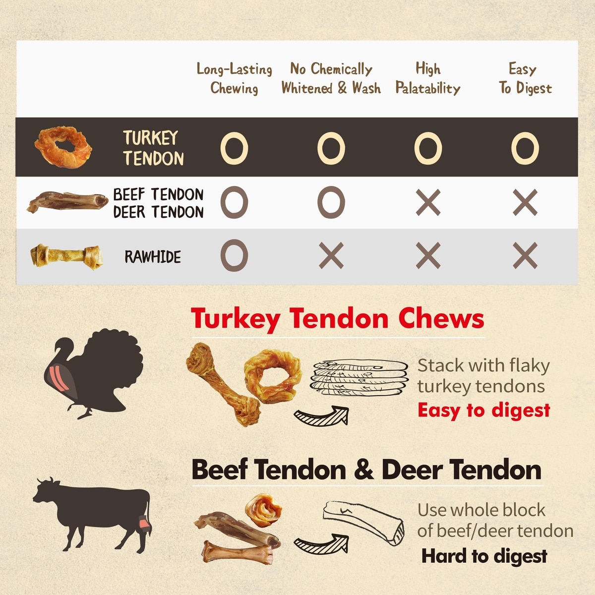 AFreschi Natural Turkey Tendon Strip Natural Dog Chew Treat, 3-oz pouch, 10 count