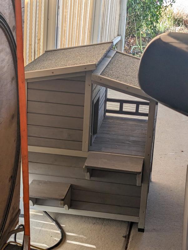 We got this to give some shelter to neighborhood kitties we've been feeding. The cat house was relatively easy to put together (but note that when the instructions
