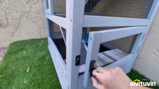 The PVC material is easy to wipe clean and helps prevent any spills or messes from seeping through, keeping the underlying structure and the cage itself protected. Wood dries out when not maintained and can become cracked, warp or become unsightly. For this reason, you should thoroughly clean and treat your pet’s hutch regularly. Make sure to use wood cleaning products and varnish that are animal-safe. Find a place that is as sheltered as possible to avoid wear and tear from the weather