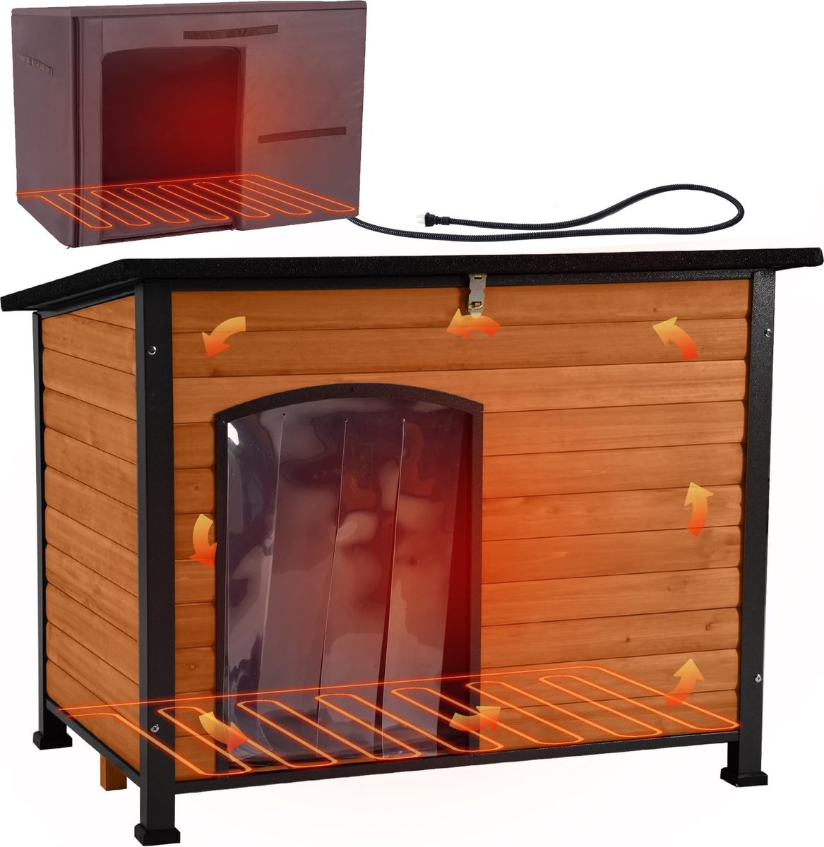 Aivituvin Wooden Outdoor Heated Dog House, Brown, Large