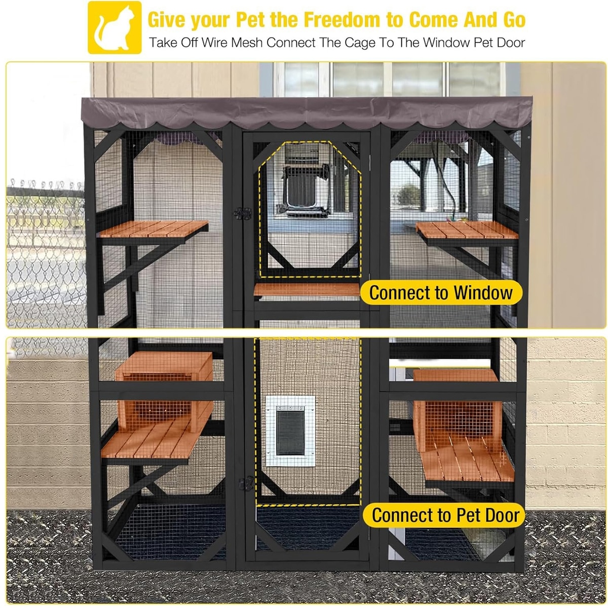 Aivituvin-AIR37-M -B Walk-in Wood Outdoor Cat Enclosure with Roof Tarp, Brown, Medium: 62.6-in