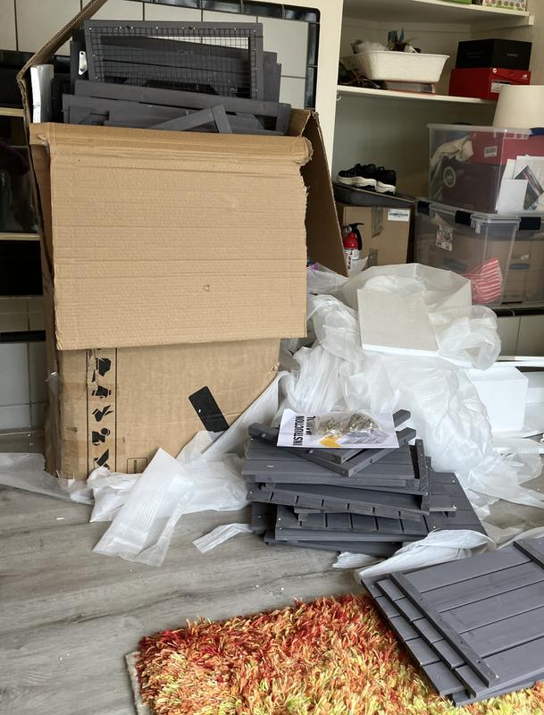 We took everything out of the box and began assembling it but the chemical smell was (is!) very horrible and strong, and I don’t know what it’s from- the paint? I assume? Many pieces are already chipped right out of the box/wrapping and I don’t want my poor cats subjected to the smell or worse, ingesting it if it continues to come off and apart so easily. Chewy is so great about returns but I have to say, it’s going to take some real tetris-ing and strength (box weighs 85 lbs) to get it out of my apartment (which is of course on the third floor!). Not sure if I just got a bad box but I really wish I had never ordered this!