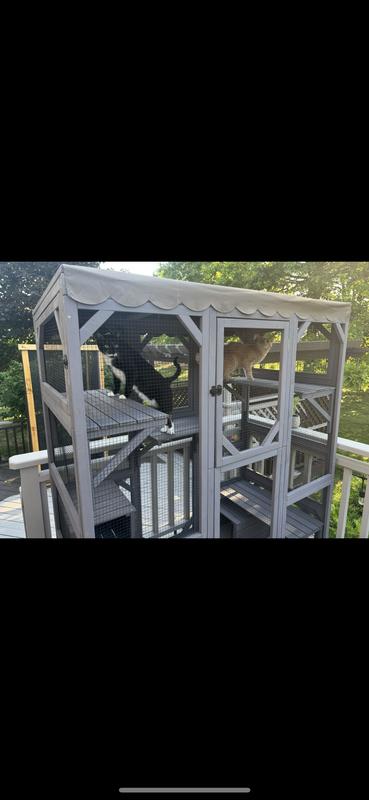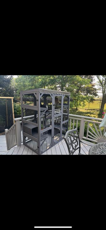 Our cats love this, of course they do. All cats would. But do they have to put it together? Not so much. The assembly of this was just laughable. If you can put this together with your partner/spouse and still be together when it’s done you will make it through anything. Not all of the screws were the proper screws, directions were tough to get through (and I am a pro with pre-fab furniture) and it is literally impossible to do alone. It took about 2 hours from start to finish. A lot of the paint was scuffed from packaging, a part of the wood was split and it had a pretty strong odor- it could have been the wood material itself but I’m probably going to paint it with outdoor paint to be safe it’s water proof. Good, safe, outdoor option for my babies to enjoy the fresh air. Is it worth $300? No. Definitely over priced. But it gets the job done.
