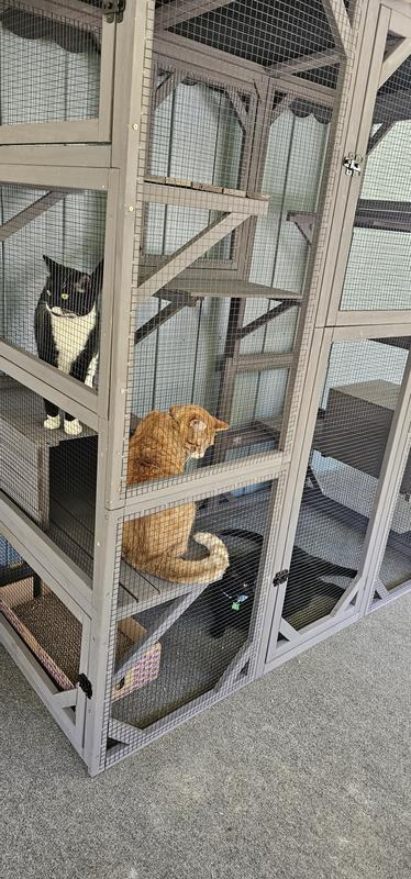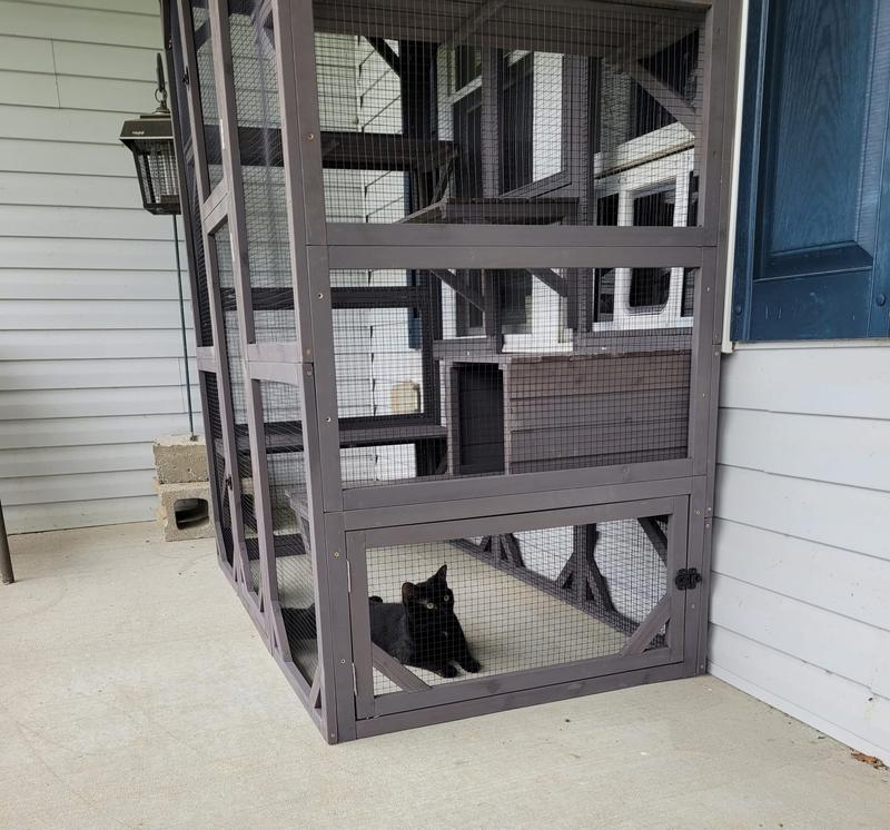 - This extra large outdoor kitty enclosure provides plenty of room for your furbaby to engage in outdoor activities like climbing, jumping, and lounging.