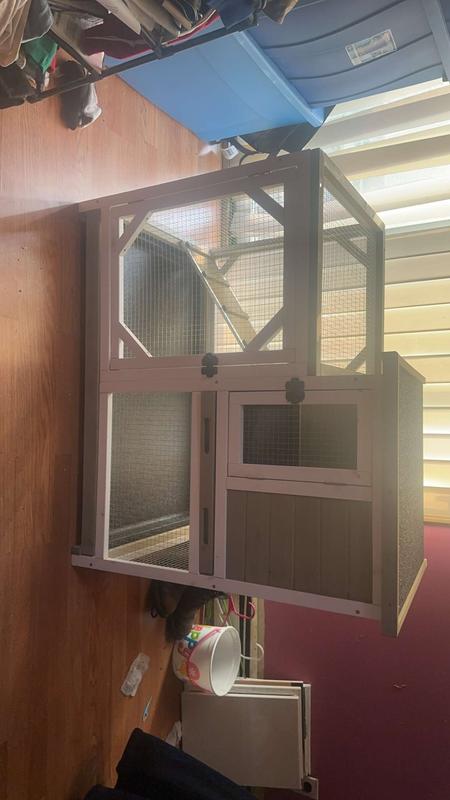 I purchased this hutch originally in August, by the end of October the bottom tray had a 4-5 inch crack in it. Chewy kindly replaced it and I received my replacement in November. About 4 weeks later, and now the top tray does not stay flat, if my bunny sits on it, she’s half way through the floor as the back corner droops so badly. Don’t waste your time or money.. it is upsetting as it is a very cute hutch.