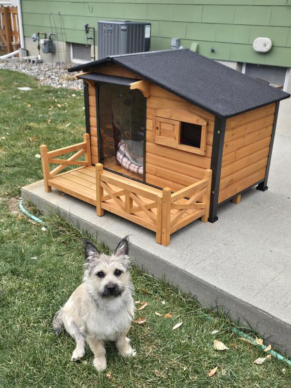 Aivituvin Metal Frame Wood Outdoor Dog House, Medium, Dark Brown