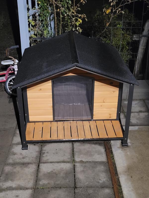 This dog house has 6 sides with insulated walls for ultimate warmth and comfort. It has a waterproof asphalt roof to block out rain, snow, and sunlight. It provides shade and coolness in the summer and warmth in the winter.