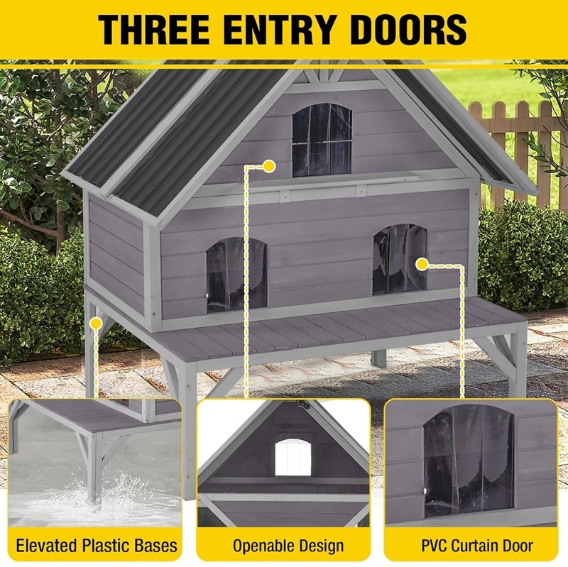 Aivituvin Wooden Outdoor Cat House with Metal Roof, Gray, Medium