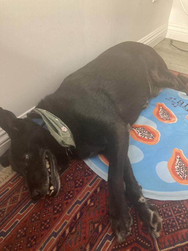 Our dogs are loving this on the hot days we have been having, especially our Akita mix. It’s on the smaller side so he doesn’t quite fit but he’s always laying on it. It does get quite cool while they’re on it, you do have to have them take breaks from time to time or it gets warm.