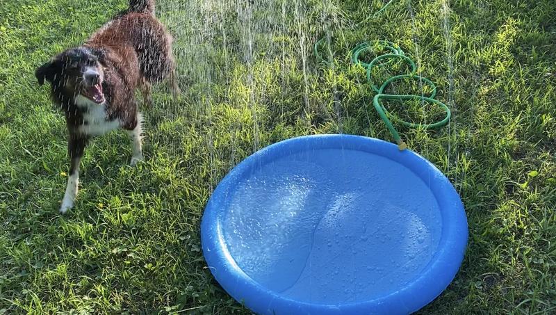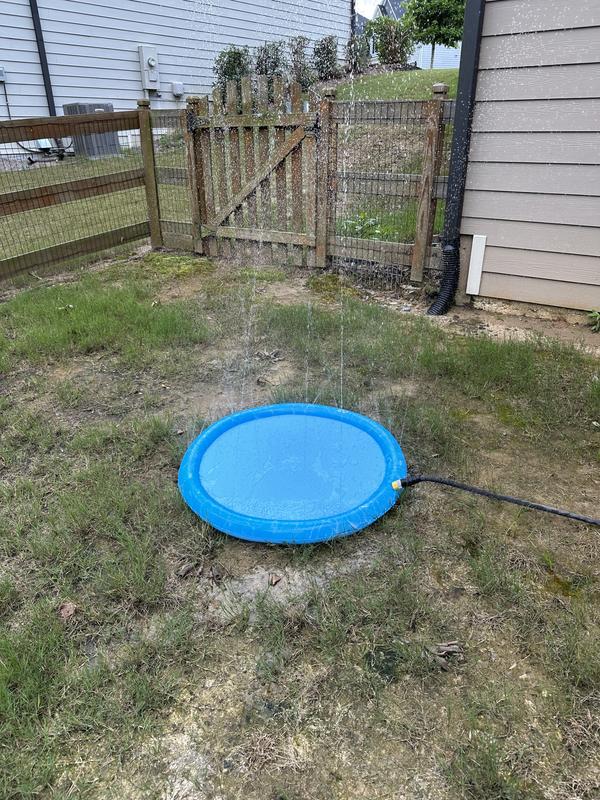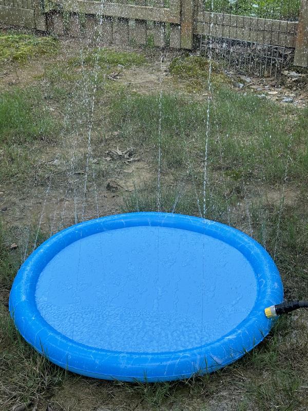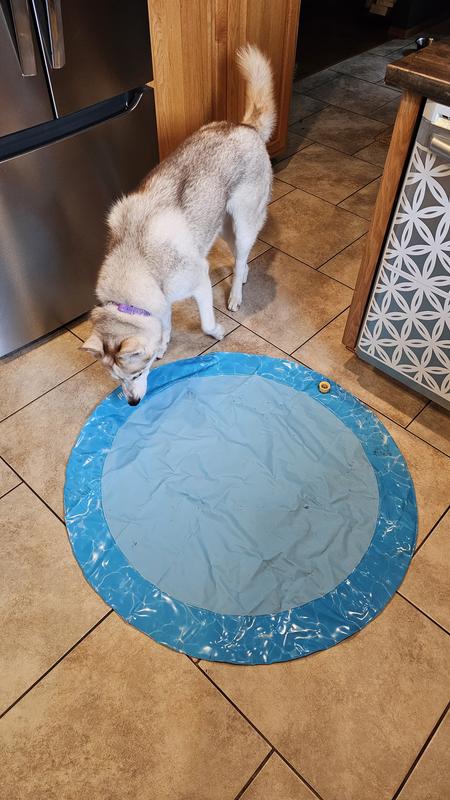 Dogs liked the water pad however, I didn’t notice in the ad that the fill hookup is on the top of the sprinkler ring which makes it bend over with the weight of the hose and then has a leak at point of fill. The excess water spill is cause for 2 star rating.