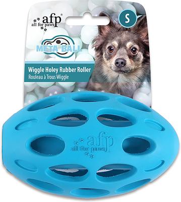 allforpaws Meta Ball Wiggle Holey Roller Dog Chew Toy, Blue, Small