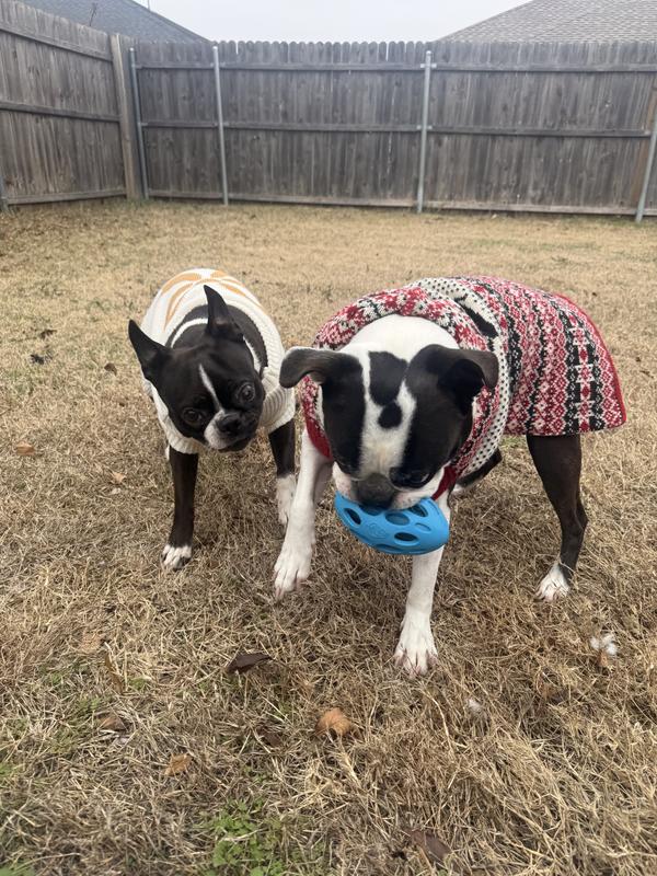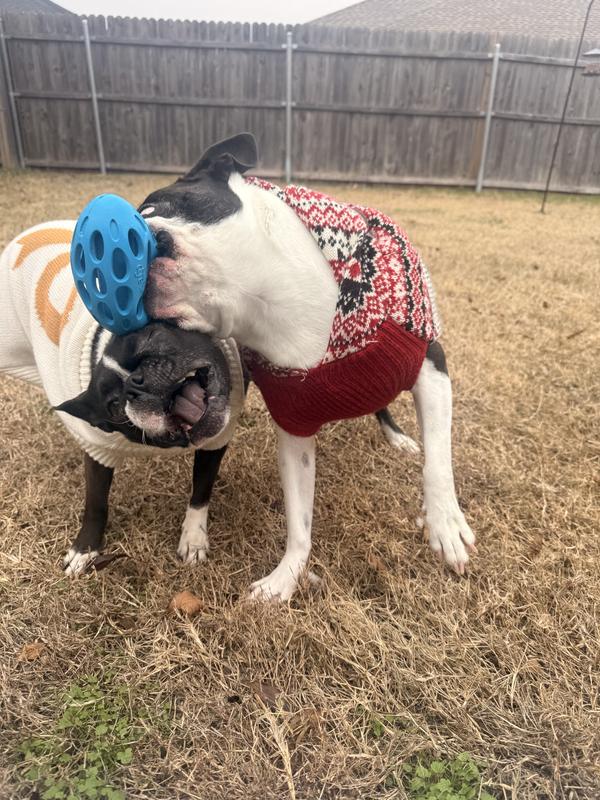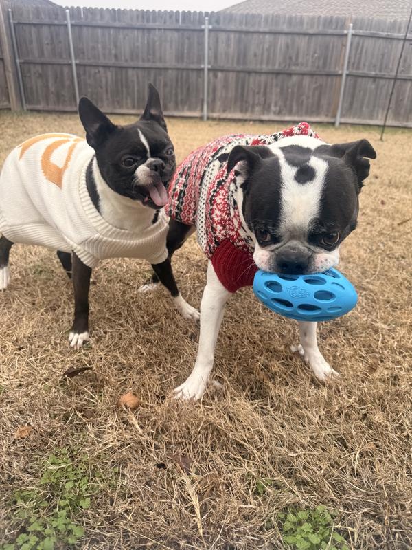 This toy is an absolute blast for active dogs! My Bostons loved playing with this sound toy. It’s not the traditional squeaky toy, is super durable, and perfect for outdoor play.
