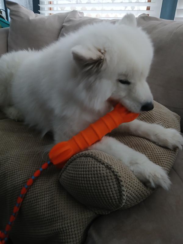 This is a great, fun and well made toy that is available in different sizes for your dog. Great for playing tug-of-war and is durable. My dog has been chewing