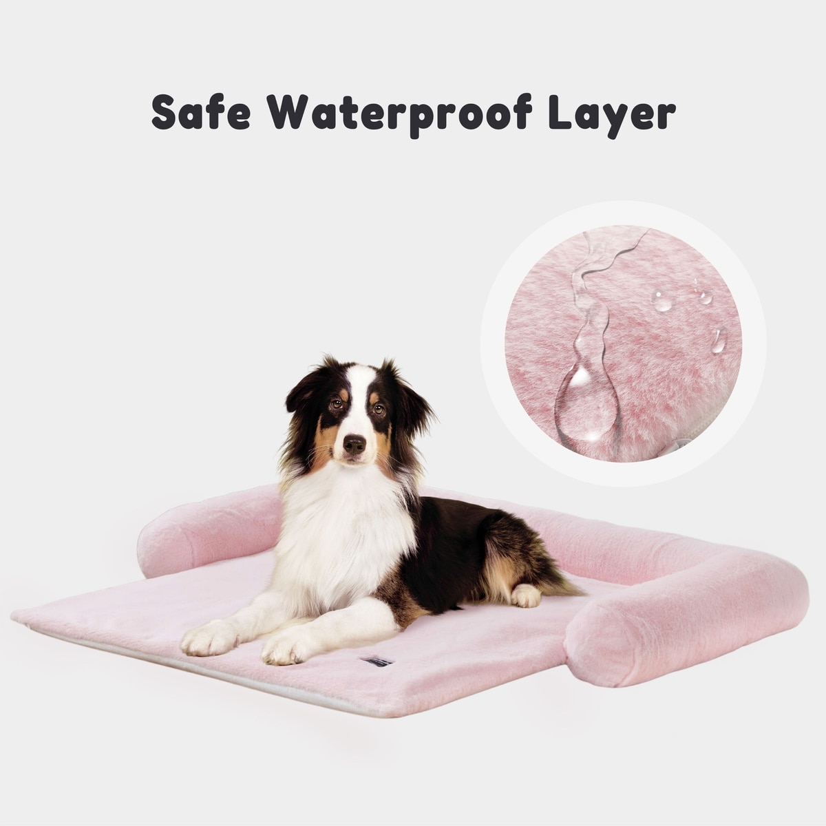 Allisandro Waterproof Pet Mat & Anti-Slip with Bolster Design Dog & Cat Bed with Removable Cover, Light Pink, Large