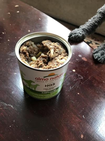 Almo Nature HQS Natural Chicken & Tuna with Vegetables Canned Dog Food, 9.87-oz can, case of 12
