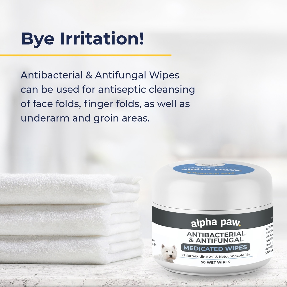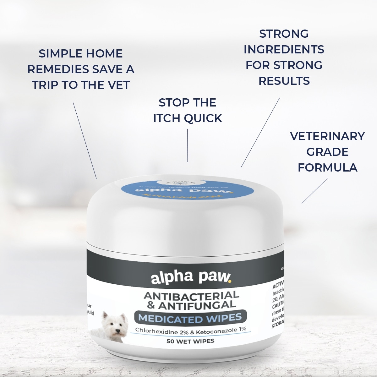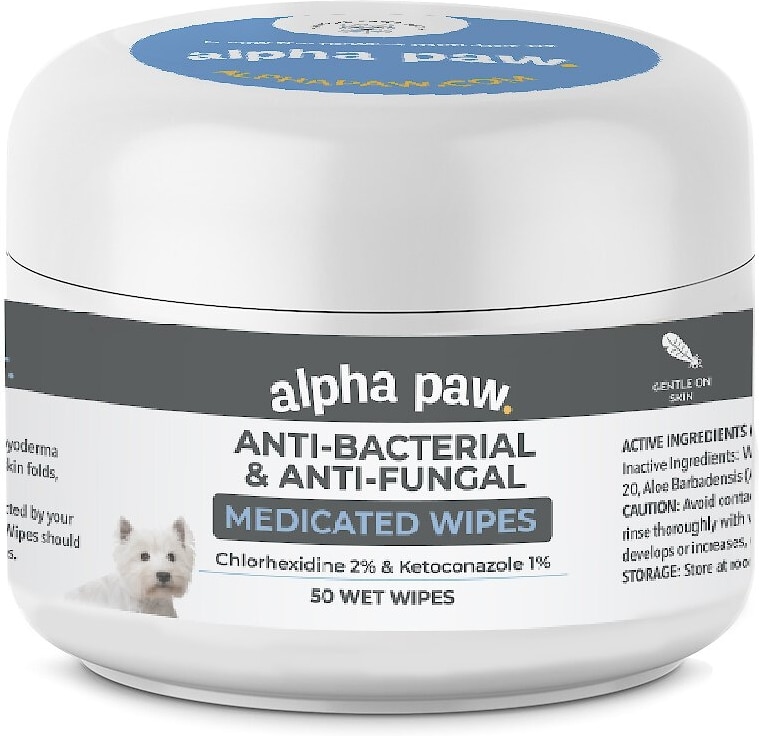 Alpha Paw Antibacterial & Antifungal Medicated Dog & Cat Wipes, 50 count