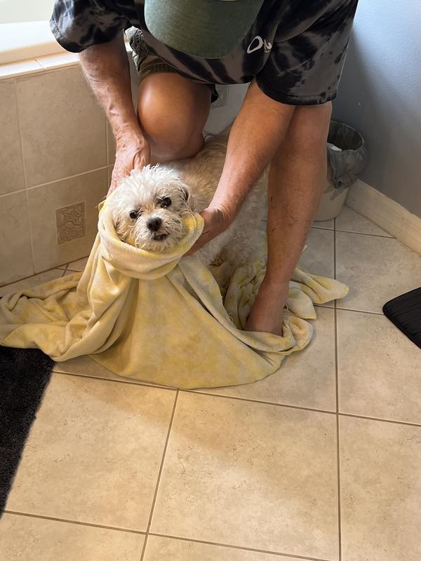 So we used the product on our white maltipoo. Curly hair , long ears. Really liked the very, very light scent and the clear creamy feel to the product. Kept away